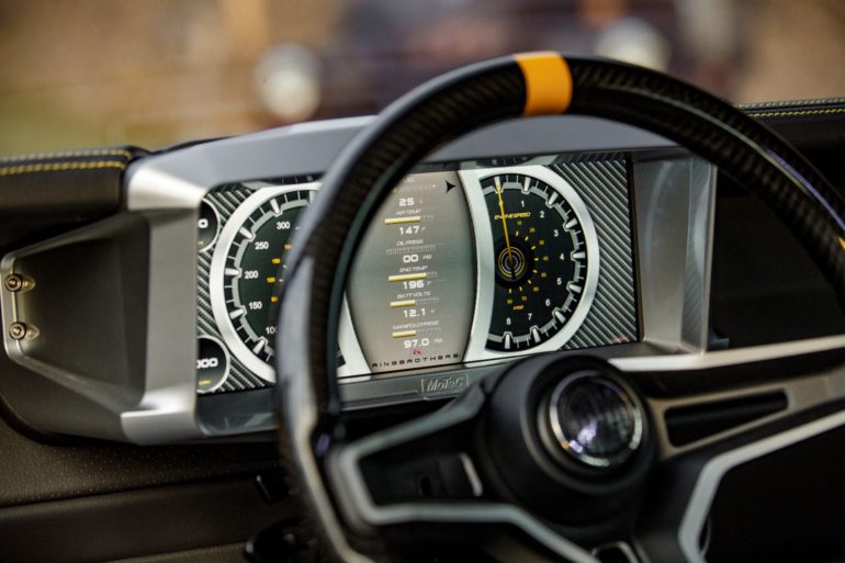The Ringbrothers team completed extensive metalwork, eventually making the Charger a unibody with an integrated Flowmaster exhaust system. Motul oil provides the necessary lubrication for the Mopar crate engine, while Michelin Pilot Sport 4S tires ensure optimum grip. Murphy’s monster was also fitted with a MoTeC engine management system and gauges.