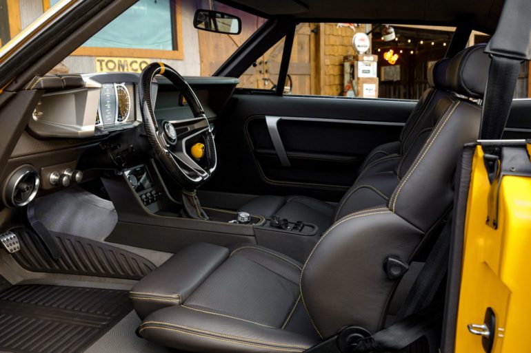 As for that signature paint job? It’s a custom BASF shade called “Pile Up Yellow.” Other highlights include custom HRE wheels, a QA1 carbon-fiber driveshaft, and adjustable shocks. All told, the Ringbrothers team spent more than 4,000 hours on the CAPTIV restomod. “Greg and his team did phenomenal work before it came here, and it was a joy to work on such an amazing build together,” Ring added.