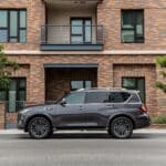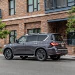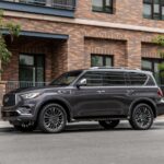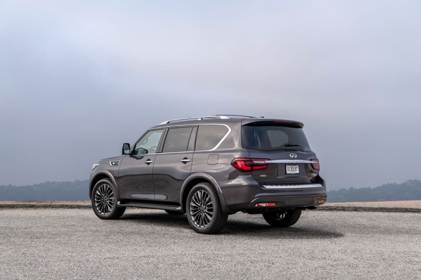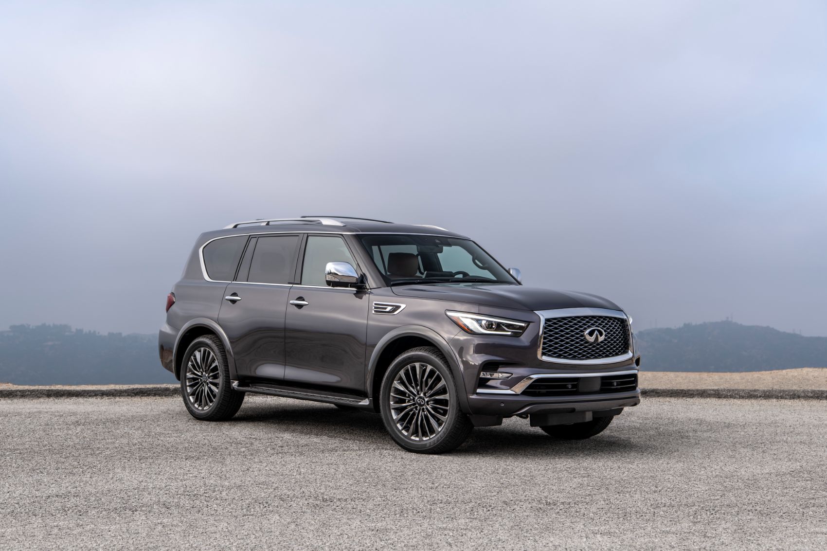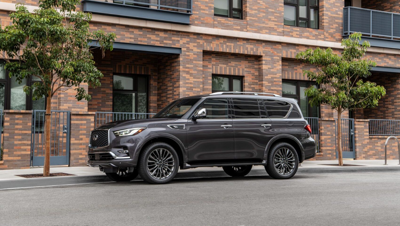 The 2023 QX80 comes in three trim levels: Luxe, Premium Select, and Sensory. Rear-wheel drive is standard, although Infiniti’s All-Mode Four-Wheel Drive is available for each trim level. Traction control, hill start assist, and a snow mode are all standard, regardless of the drivetrain. Both seven and eight-passenger seating configurations are available.