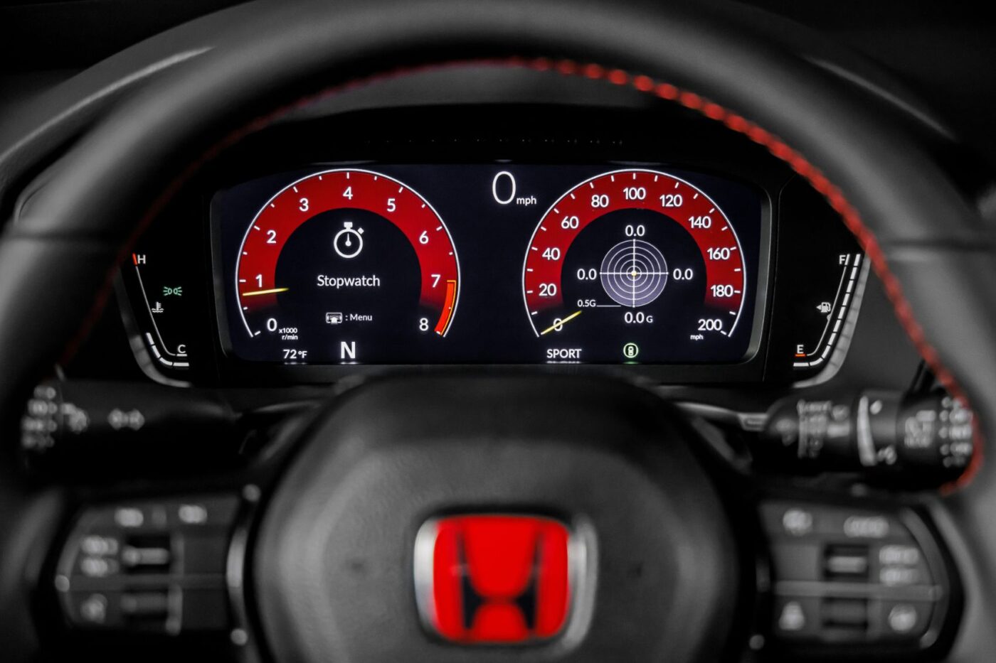 Rounding up its “gentleman racer” vibe (a significant upgrade from the outgoing Type R’s boy racer charm) are three round exhaust tips and a new rear diffuser to improve downforce while reducing drag. Also standard are 19-inch matte black wheels wrapped in sticky and broader Michelin Pilot Sport 4S rubber. Honda said the alloys have a “reverse rim” design that improves the tire contact patch.