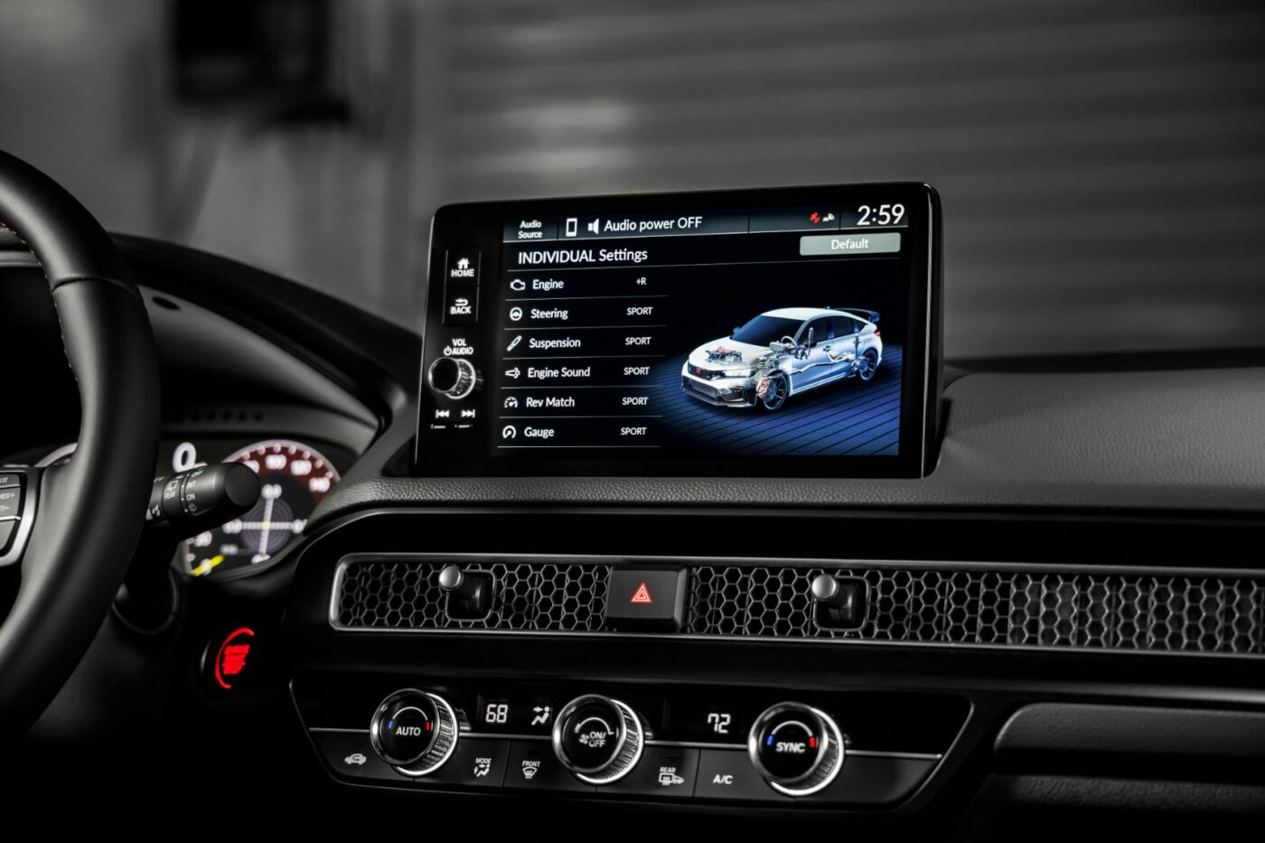 The 2023 Honda Civic Type R has four pre-set driving modes: Comfort, Sport, R+, and Individual. The latter will enable you to tune the engine response, suspension, steering, and exhaust sound.