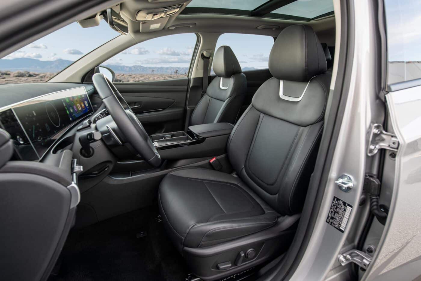 Gas-powered Hyundai Tucsons will soldier on with a 2.5-liter direct-injected four-cylinder engine with 187 horsepower and 178 lb-ft. of torque. The engine connects to an eight-speed automatic that turns the front wheels. Hyundai’s HTRAC all-wheel drivetrain is optional.