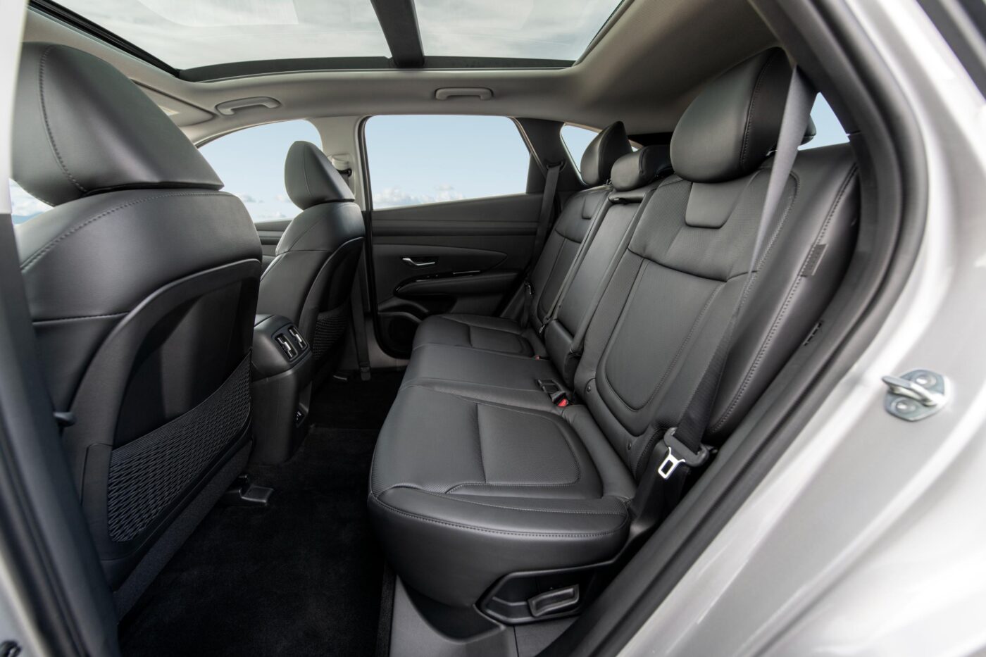 Internal combustion and Hybrid Tucsons offer between 38.7 and a maximum of 41.2 cubic feet of cargo space with the rear seats up, expanding to 74.8 cubic feet when folded down (with a max of 80.3 cubic feet).