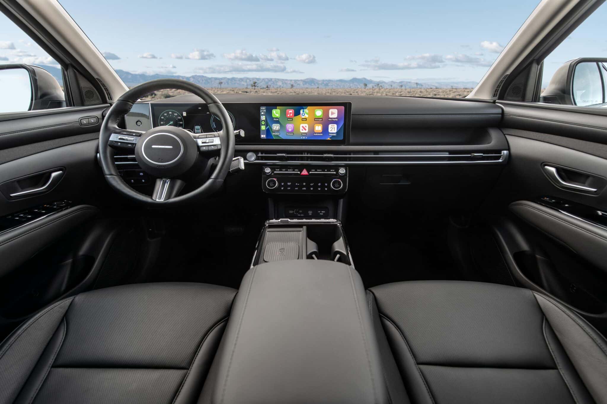 The most noticeable change is the 2025 Tucson’s new dashboard, which houses a 12.3-inch digital instrument cluster and a 12.3-inch infotainment touchscreen.