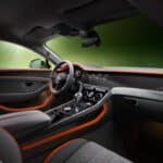 The interior features quilt embroidery, sculpted quilting, and fading perforations that befit an ultra-luxurious grand tourer. The 20-way power-adjustable front seats include optional postural adjustment and automatic climate controls for maximum relaxation and comfort. Laminated acoustic glass for the windscreen and side windows reduces exterior noise by up to nine decibels.
