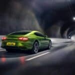 The third element is a 25.9 kWh battery positioned behind the rear axle, allowing a near-excellent 49:51 front/rear weight distribution. It enables the Continental GT Speed to run in full electric mode for about 30 miles at speeds up to 87 mph.