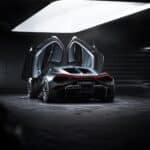 Meanwhile, the cabin has crystal glass and aluminum detailing, knurled aluminum switchgear (including a pull-to-start lever), and floor-fixed seats. The Tourbillon’s stereo has no conventional speakers or subwoofers. Instead, the system utilizes the interior panels as the speakers and woofers, helping save weight.