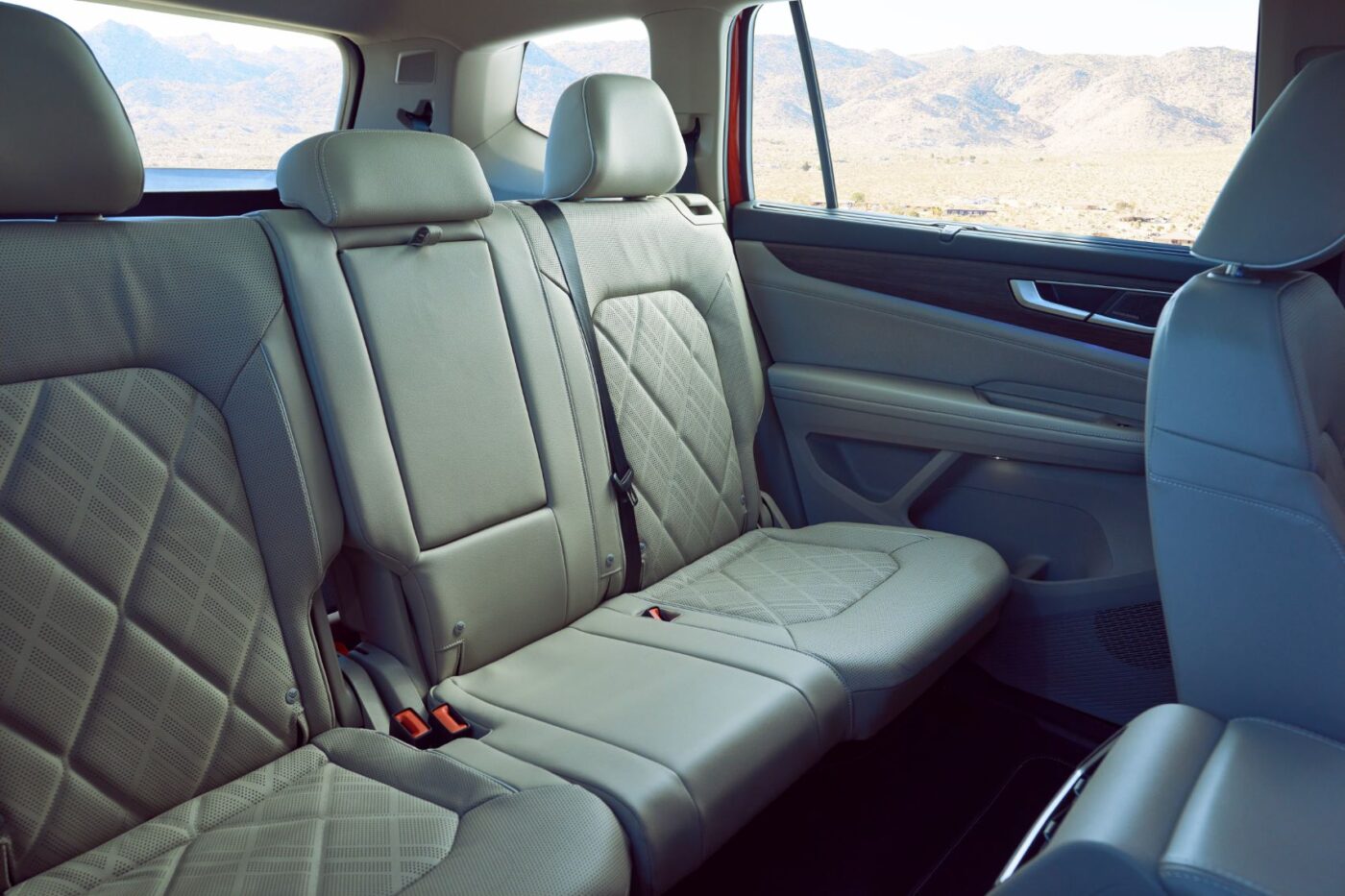 The VW Atlas was never about poshness, but the German automaker has taken the necessary steps to make the cabin more luxurious in both look and feel. It starts with premium-feeling materials and more soft-touch surfaces on the dashboard, center console, and door sidings. In addition, the cabin now has standard interior ambient lighting, while higher trim variants get quilted cowhide upholstery with diamond-shaped patterns like in a lounge sofa.