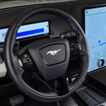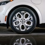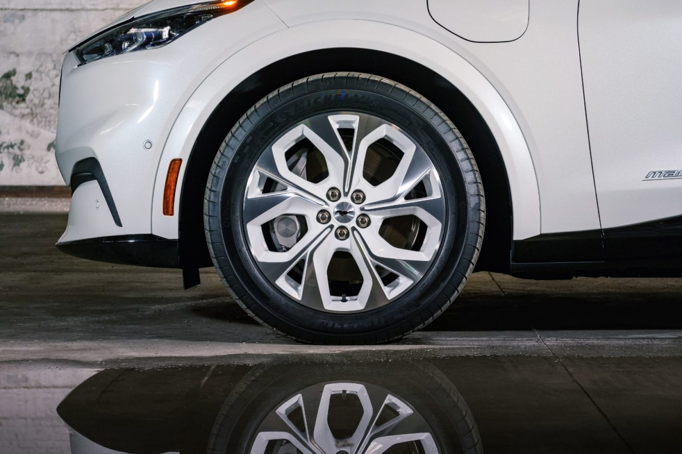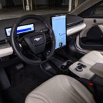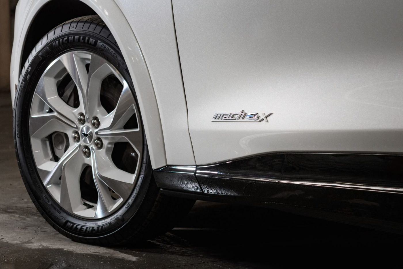 The Ice White Edition Package will be available for Mach-E Premium models. The exterior color is called Star White Metallic Tri-Coat, which is offset slightly by the Oxford White pony badge. The package also adds 19-inch machined-face aluminum wheels with Oxford White-painted pockets.