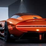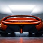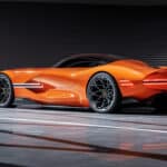 Genesis presented the life-size X Gran Berlinetta VGT Concept at the Gran Turismo World Series World Finals in Barcelona, Spain, wearing a stunning Magma Orange paint. Other prominent features include an extended dash-to-axle ratio (reminiscent of Captain Nemo’s “Nautilus Car” from The League of Extraordinary Gentlemen), continuous LED driving lights that link the quad headlights and front grille, and a delicately curving rear spoiler. The hopelessly curvaceous body shell resulted in a 0.34 drag coefficient.