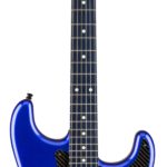 Technically speaking, the shade of blue on this Lexus Strat is called an “omnidirectional Structural Blue finish.” It looks sort of like a Hot Wheels car or like a deep tint over a chrome base. It looks good on luxury performance cars, but it really looks fantastic on this Strat. Originally inspired by the Morpho butterfly, the color works in a spectral range from light metallic blue to deep midnight blue.