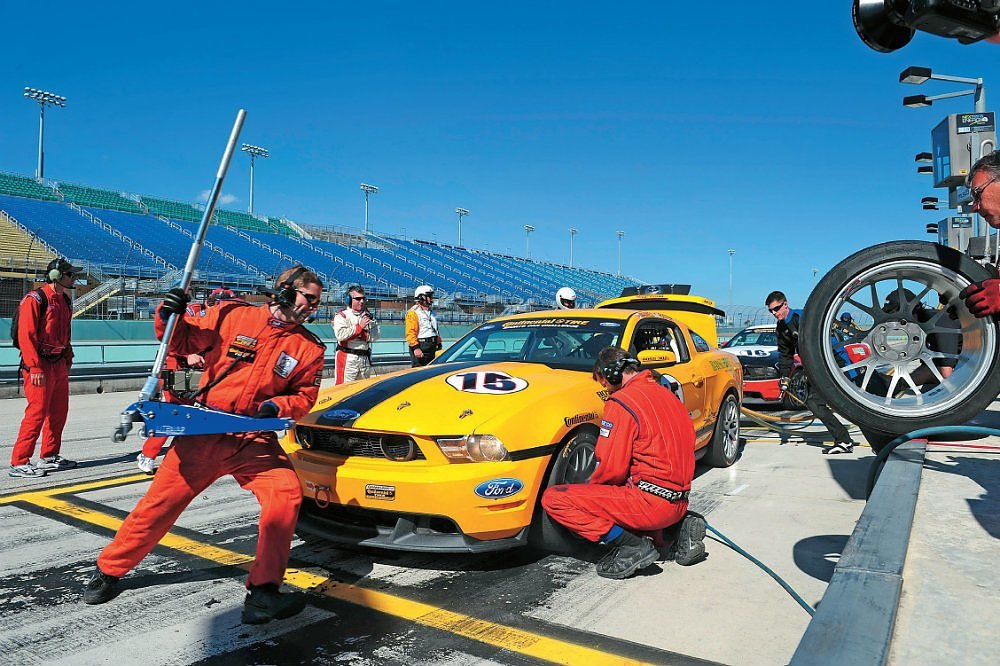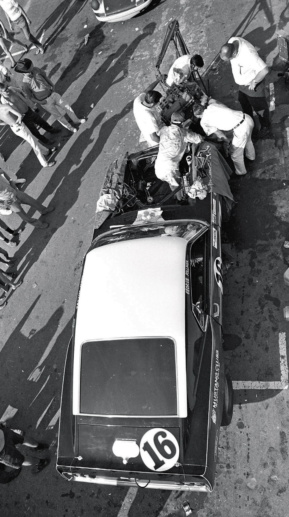 Follmer’s number 16 Mustang gets an engine swap prior to the St. Jovite Trans-Am. Ford Motor Company Photo
