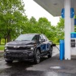 Like the Hummer EV, the Silverado EV has four-wheel steering that shortens the turning radius at low speeds and improves handling at higher speeds. The top-of-the-line RST trim has 24-inch wheels as standard.