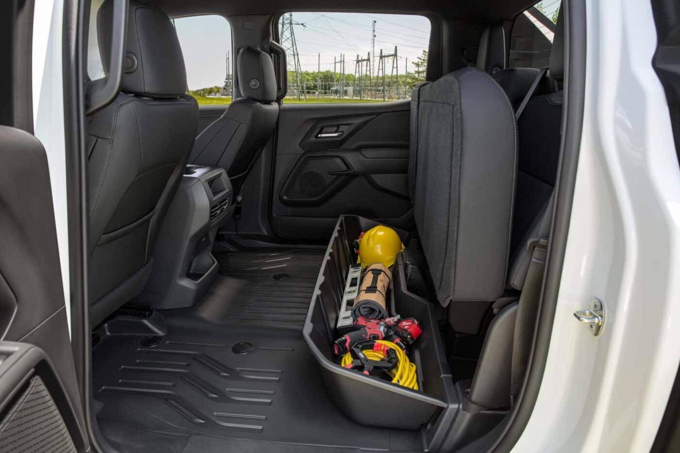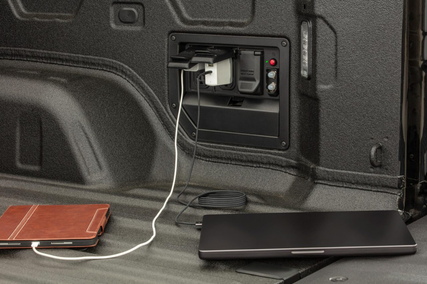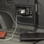 Combined with Chevy’s power-operated Multi-Flex Tailgate, the bed space extends to 10 feet and 10 inches when the tailgate is open, allowing you to carry or store even longer items. The truck has an optional tonneau cover to protect the bed contents from prying eyes and would-be thieves.