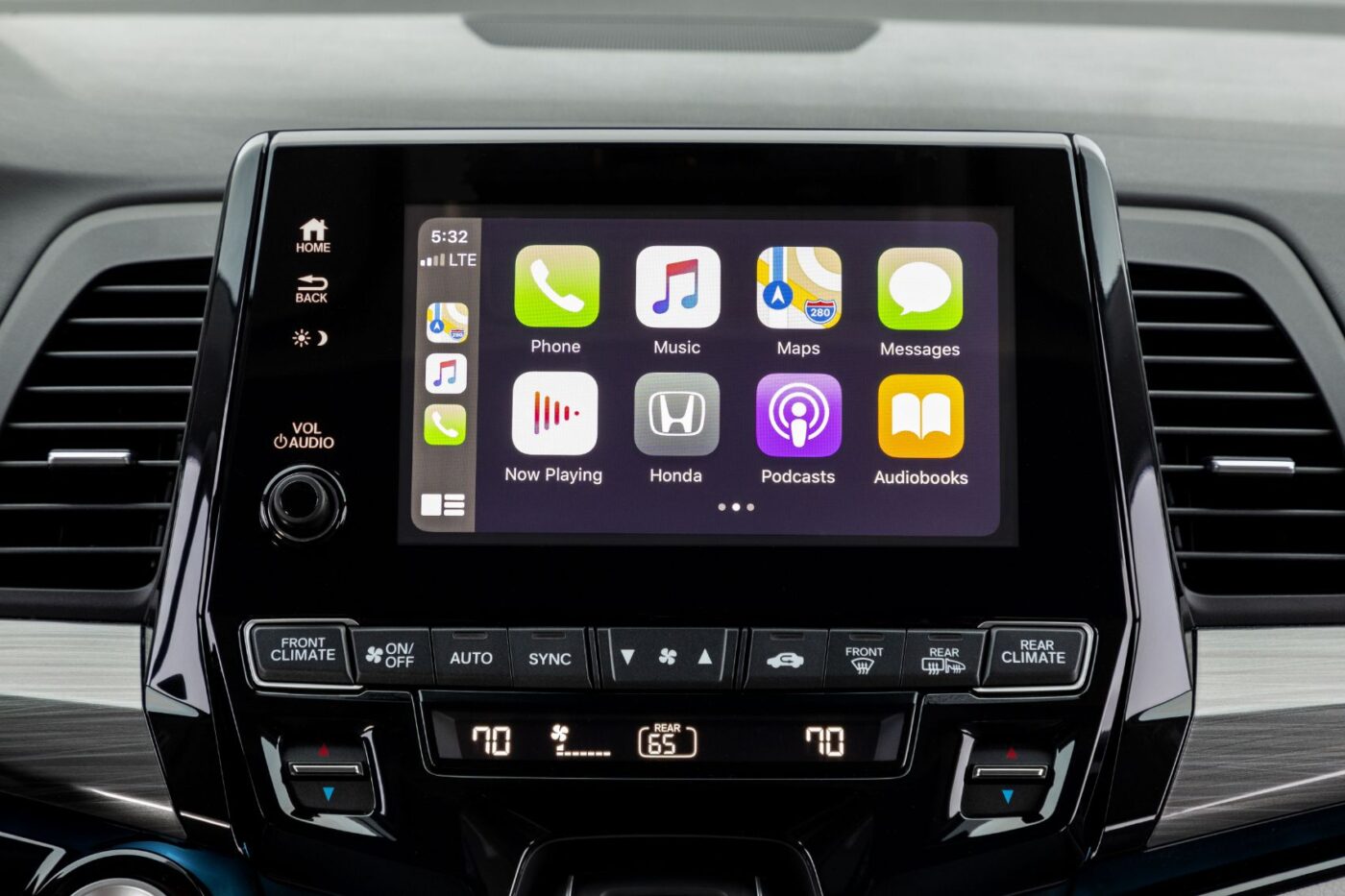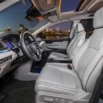 The Sport welcomes drivers and passengers with black leather seats, red contrast stitching, a power moonroof, and accent lighting. Honda’s “Magic Slide” second-row seats fold nearly flat, making it easier to haul cargo or to remove them entirely. Meanwhile, the third-row seats fold into the floor. Also standard is a Rear Seat Reminder feature that can pair with the available CabinWatch viewing system.