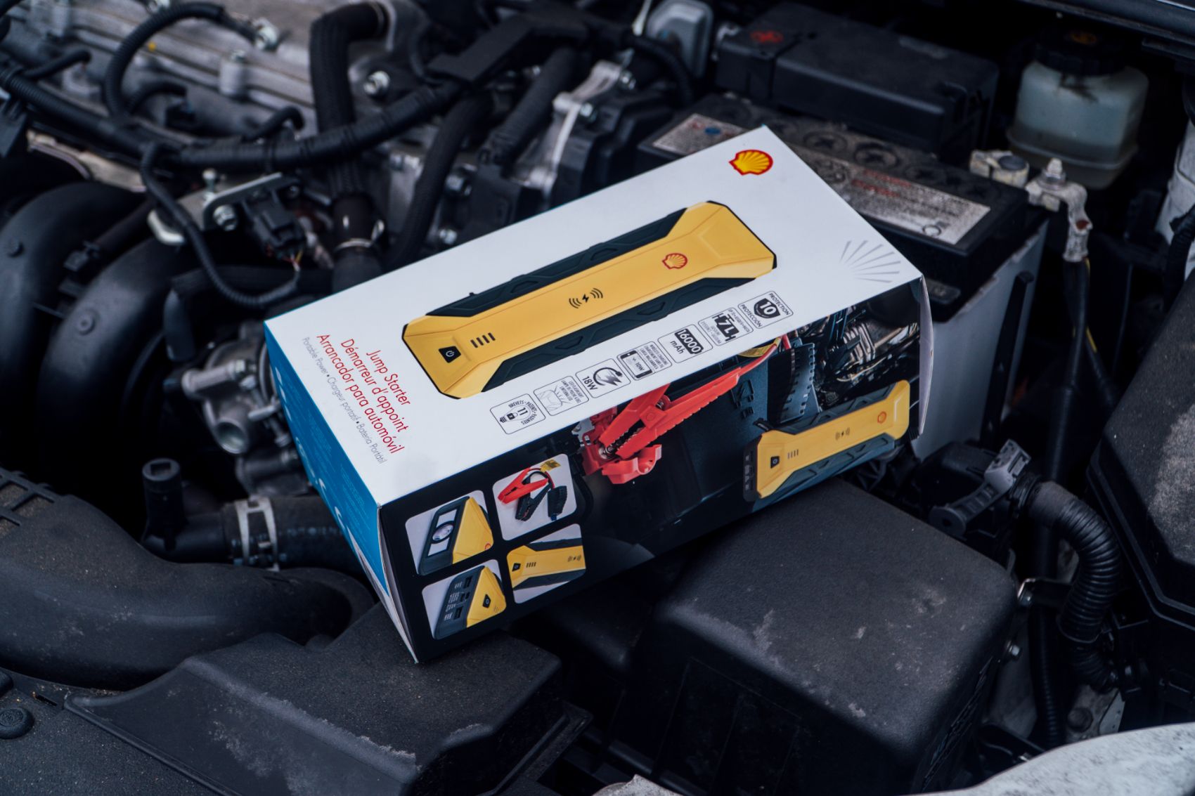 The Boost feature generates the highest possible current, but Shell recommends using this only when absolutely necessary. It’s advisable to attach the clamps first to your battery, then press the Boost button on the jumper cable connector.